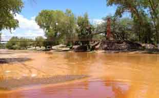 ◀ En el cauce, el aire y el suelo sigue la presencia de metales pesados, lo que ha generado enfermedades, acusan pobladores. Foto La Jornada /C. Gómez Lima,