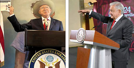 ▲ Las recientes detenciones, junto con las de Rafael Caro Quintero y ovidio guzmán, entre otras, demuestran la cooperación bilateral, dijo Ken Salazar. en su mañanera, el presidente andrés Manuel López obrador había reprochado que la información proporcionada por estados Unidos era insuficiente. Fotos Víctor Camacho y Presidencia / Alonso Urrutia y Laura Poy