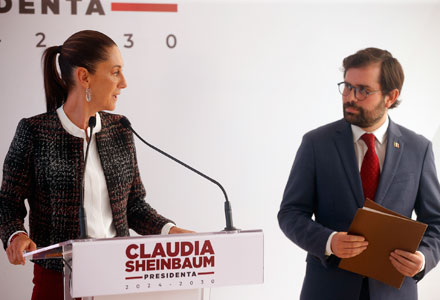 ▲ La virtual presidenta electa, Claudia Sheinbaum, dio a conocer ayer que, durante su gobierno, el actual titular de la Cofepris será el encargado de impulsar la unificación de los servicios de salud. Destacó que se trata de una nueva visión, donde la atención sanitaria es un derecho y no una mercancía, y adelantó que la compra de medicamentos estará a cargo de Birmex. Svarch, a su vez, indicó que trabajarán en la creación de un expediente clínico electrónico con portabilidad entre instituciones. Foto José Antonio López / Néstor Jiménez