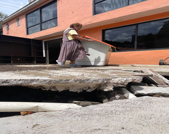 ▲ Tras las fuertes lluvias del lunes por la noche se formó una oquedad de 10 metros por ocho de diámetro y dos de profundidad que afectó una casa en la calle Guadalupe I. Ramírez, donde se abrió otro de 30 metros cuadrados sobre el arroyo vehicular. Foto Alfredo Domínguez A. Bolaños