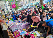 ◀ Padres y madres acudieron a la calle de Mesones en el Centro Histórico con el fin de surtir la lista de útiles. Hoy comienza el ciclo de educación básica para un millón 250 mil alumnos en la CDMX. Foto Cuartoscuro