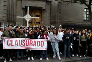 ▲ Alumnos de universidades públicas clausuraron ayer de manera simbólica la sede de la Suprema Corte en protesta por el apoyo de la mayoría de ministros al paro de labores en el Poder Judicial de la Federación. Foto Alfredo Domínguez