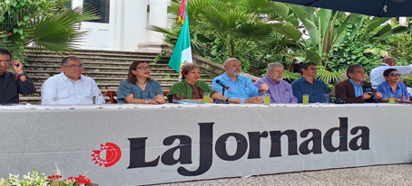 Este diario no ha nacido para satisfacer las necesidades profesionales de un grupo de periodistas. Surgió, sí, de un proyecto impulsado por ellos, pero hecho suyo y concretado por millones de mexicanos que, en esta hora del destino nacional, han hecho profesión de fe, no en los convocantes, sino en la democracia plural de la que este periódico aspira a ser parte y motor. El domingo pasado, durante el festejo por las cuatro décadas de vida, la directora, Carmen Lira Saade (al centro), recordó los inicios del periódico y reconoció a los pintores que donaron obras para financiarlo. Se entregaron placas conmemorativas a fundadores y a tres pilares de forma póstuma: Carlos Payán Velver, Pablo González Casanova y Josetxo Zaldua Lasa. Foto Guillermo Negrete. Blanche Petrich
