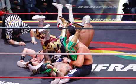 ▲ A pesar de que la lucha libre se mantiene dentro de la identidad popular mexicana y como una gran atracción para los aficionados, detrás de las máscaras, las llaves, contrallaves y saltos espectaculares emerge un mundo donde la mayoría de los gladiadores enfrentan la precariedad laboral, que los lleva a permanecer activos a edades avanzadas, y la carencia de derechos básicos como el seguro médico, por lo que el halo de las lesiones graves e incluso la muerte los rodea cada vez que suben al cuadrilátero. Foto Germán Canseco / E. Palma y A. Aceves