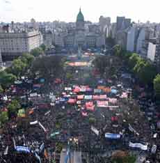 ▲ Miles de personas colmaron ayer la Plaza del Congreso de Buenos Aires, Argentina, en defensa de la educación pública ante la intención del presidente Javier Milei de vetar una ley aprobada recientemente que busca mejorar el presupuesto de las universidades. Foto Afp / S. Calloni, corresponsal