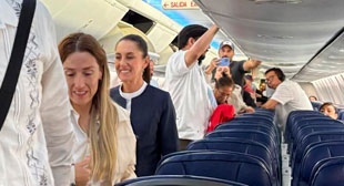 ▲ En su primera gira pública, la presidenta Claudia Sheinbaum abordó un vuelo comercial de la Ciudad de México al puerto de Veracruz, donde encabezó la ceremonia del 200 aniversario de la promulgación de la Constitución de 1824 y los 203 años de la armada. Foto tomada de redes sociales / Alma E. Muñoz,