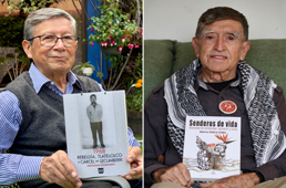 ◀ Ambos, partícipes del movimiento de 1968 en México, y también economistas, Francisco Colmenares y Américo Saldívar presentaron libros sobre su experiencia. El primero, Rebeldía, Tlatelolco y cárcel de Lecumberri, mientras el también militante comunista, Senderos de vida: Memorias de solidaridad, lucha y represión. Fotos Roberto García Ortiz y Yazmín