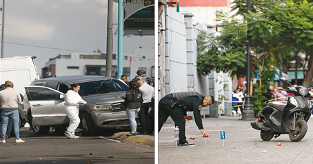 ▲ Mientras en calles del Centro Histórico (derecha), Diana Sánchez Barrios, lideresa de comerciantes, diputada local suplente y activista por los derechos LGBT+, fue víctima de un ataque directo en el que resultó herida de bala y falleció uno de sus dos acompañantes, en el cruce de Viaducto y Cuauhtémoc, a un lado de Parque Delta, fue asesinada a tiros la abogada Oralia Pérez Garduño cuando circulaba en su camioneta. En ambos casos, los atacantes huyeron en moto. Fotos Alfredo Domínguez y Víctor Camacho. J. Quintero y L. Gómez