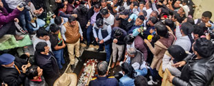 alto al crimen organizado, más de 3 mil personas acudieron al entierro del sacerdote Marcelo Pérez en San Andrés Larráinzar. La Fiscalía de Chiapas anunció que detuvo al probable autor material del asesinato, cometido el 20 de octubre. En la ciudad de México, la presidenta Claudia Sheinbaum informó que la FGR atrajo el caso. Foto Afp / E. Henríquez, A. Urrutia y A. SáncHez
