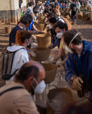 ▲ A nueve días de que se registrara el mayor desastre natural en España por el paso de la DANA, cientos de voluntarios formaron ayer largas cadenas humanas para sacar el lodo con cubetas en las zonas afectadas (la imagen, en Masanasa, Valencia). Mientras, con el hallazgo del cuerpo sin vida de un niño de cinco años, la cifra de muertos ascendió a 219. Foto Ap / Armando G. Tejeda, corresponsal