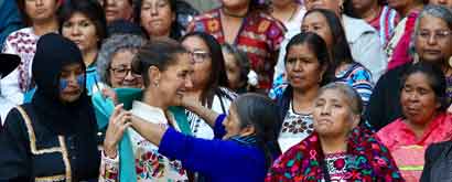 ▲ La Presidenta se reunió ayer en el patio central de Palacio Nacional con 500 artesanas con motivo de Original: Encuentro de Arte Textil Mexicano, el cual ofreció extender de una a cuatro ediciones en el año y en varios puntos de la República. Foto Yazmín Ortega Cortés / Ángel Vargas