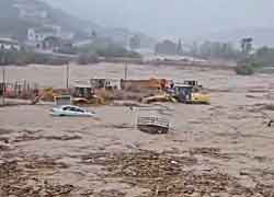 ▲ Las provincias de Málaga (en la imagen) y Valencia fueron declaradas en alerta roja ante la nueva ola de lluvias torrenciales que dieron inicio el martes y se prolongarán hasta mañana, lo que ya provocó la evacuación de miles de personas ante la crecida de los ríos. Foto tomada de redes / A. G. Tejeda,
