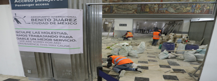 ▲ Con miras a la copa de futbol, de la que México será una de las tres sedes y que atraerá a millones de turistas de todo el orbe, el aeropuerto capitalino empezó la modernización de fachadas, salas de espera y áreas de bandas de equipaje y migración. Foto Jair Cabrera Torres. César Arellano