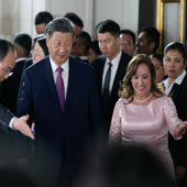 ► El mandatario chino y la peruana Dina Boluarte dieron el banderazo virtual desde el palacio de gobierno de Lima. Foto Ap