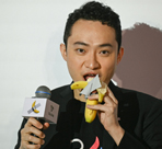 ◀ El empresario chino-estadunidense Justin Sun cumplió su promesa de comerse la obra de arte Comedian (un plátano pegado a la pared con cinta adhesiva), que compró en una subasta de Sotheby’s. Hacer esto en una rueda de prensa también puede formar parte de su historia, dijo. Foto e información Afp