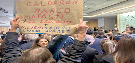 ▲ Cuando salía del foro México y España: Amigos para Siempre, una mujer originaria de Ciudad Juárez recriminó a Felipe Calderón llamándolo