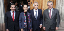 ▲ A la reunión en el Museo Kaluz asistieron el secretario de Hacienda, Rogelio Ramírez de la O (izquierda), y los empresarios Rolando Vega, del CMN, y Francisco Cervantes, del CCE. Foto Cristina Rodríguez