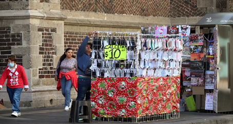 ▲ Sin restricción, los vendedores ambulantes de comida, juguetes, ropa y productos navideños ya ocuparon el corredor peatonal de Francisco I. Madero y el Zócalo. Algunos comerciantes comentaron que pagan cuota por instalarse en las calles. Transeúntes entrevistados dividieron opiniones, porque unos dicen que son fuentes de empleo en temporada alta y otros comentan que simplemente están porque nosotros compramos. Foto María Luisa Severiano. Elba Mónica Bravo