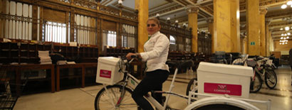 ▲ Luego de más de tres lustros en un oficio que no de 5 candidatos se habían propuesto desarrollar, Arlene Astorga (en la imagen) e Inés Montalvo expresan que ahora no lo cambiarían por otro, a pesar de ser demandante por los 80 kilos de correo que reparten a diario. Foto Yazmín Ortega Cortés / Carolina Gómez