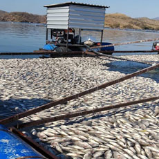 ▲ Pescadores de Cutzamala de Pinzón denunciaron que unas 100 toneladas de mojarras tilapias murieron en la presa El Gallo a causa de la falta de oxigenación del agua provocada por la actividad de la hidroeléctrica privada Mexhidro. Foto La Jornada / Sergio Ocampo
