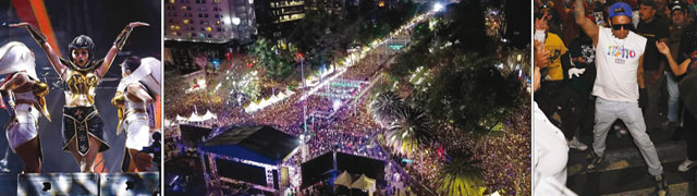 ▲ La legendaria agrupación ochentera, reconocida por sus temas de high energy, brindó entre la noche del martes y la madrugada del miércoles un electrizante concierto de cuatro horas para celebrar la llegada de 2025. El impresionante espectáculo de luz y sonido, al que no faltaron las bailarinas en el escenario, provocó la euforia de la multitud distribuida desde la Glorieta del Ahuehuete hasta el Ángel de la Independencia. Aunque mucha gente se quejó de la aglomeración, hubo quienes lograron hacerse espacio para sacar los pasos prohibidos al ritmo de la música. Fotos Jorge Ángel Pablo García / Daniel López Aguilar