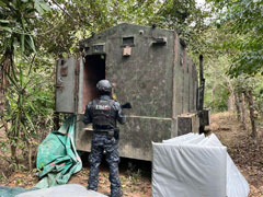 ◀ Fuerzas estatales y federales catearon en Frontera Comalapa cinco ranchos y casas de seguridad, donde liberaron a ocho secuestrados, incautaron vehículos monstruos (en la imagen), 24 unidades automotrices y detuvieron a tres personas. Foto tomada de