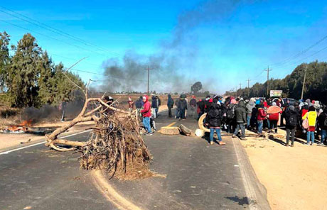 ▲ Trabajadores agrupados en el Sindicato Independiente Nacional Democrático de Jornaleros Agrícolas se declararon en huelga el viernes frente a las oficinas de la empresa El Milagro de Baja y ayer cerraron dos tramos de la Carretera Transpeninsular, a la altura del municipio de San Quintín, para exigir mejores condiciones laborales, así como el cese de amenazas y represalias. Los mil 800 empleados pidieron cambiar a todos los mayordomos por sus malos tratos. Foto Víctor González / Península BC Antonio Heras, corresponsal