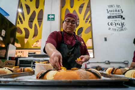 ▲ La venta de roscas de Reyes favorecerá a más de 70 mil establecimientos en México dedicados a la panadería, junto con comercios mayoristas y minoristas. Datos oficiales indican que en promedio se expenden alrededor de 4 millones de piezas cada temporada, de diferentes tamaños y sabores, incluidas las gourmet, de variado relleno. En la imagen, una panadería artesanal ubicada en la colonia Clavería, en Azcapotzalco. Foto Jair Cabrera