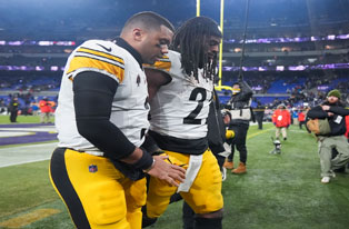 ◀ En partido de comodines, Cuervos de Baltimore cumplieron los pronósticos y se impusieron 28-14 a Pittsburgh para conseguir su boleto a la segunda ronda de los playoffs de la AFC. En la imagen, el mariscal Russell Wilson y Najee Harris. Foto e información de Ap