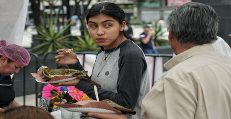 ▲ Para conmemorar el Día de la Candelaria, el gobierno de la Ciudad de México instaló la primera feria del tamal en el Monumento a la Revolución, donde están disponibles hasta el lunes diversas formas de preparación, desde las locales hasta de 10 estados de la República. También se podrá disfrutar de atole y aguas frescas, además de la participación de agrupaciones musicales. La romería se enmarca entre las acciones de la declaratoria de la capital como territorio libre de maíz transgénico. Foto Jair Cabrera. Alejandro Cruz