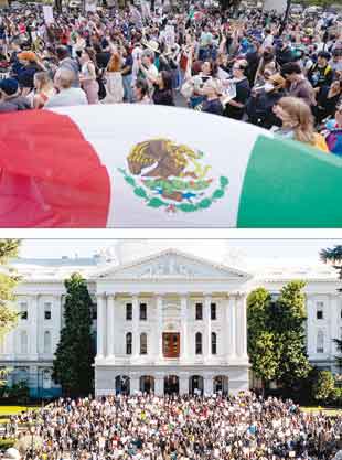 ▲ Miles salieron a las calles en todo EU en repudio a las primeras acciones de Donald Trump contra migrantes, personas LGBT+ y Palestina. El movimiento se organizó en línea bajo las etiquetas #50501 y #buildtheresistance. Las imágenes, en Austin, Texas, y Sacramento, California. Fotos Ap / Agencias