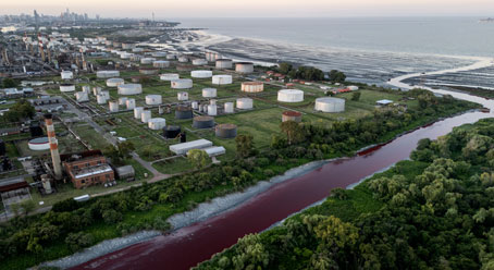 ▲ Habitantes de Avellaneda se encontraron ayer con las aguas del arroyo Sarandí teñidas de rojo. Este cauce está entubado en cerca de 80 por ciento y desemboca en el río de La Plata. Los residentes señalan a una empresa de residuos tóxicos de ser la responsable, pues no es la primera vez que ocurre. Por lo pronto, las autoridades analizan muestras para determinar de cuál sustancia se trata. Durante su campaña, Javier Milei dijo que la industria puede contaminar el agua, ya que su valor es de cero. Foto Ap. Redacción
