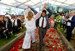 ► Con la jefa de Gobierno de la capital, Clara Brugada, como madrina, 500 parejas contrajeron matrimonio ayer en el Centro Cultural Los Pinos. En tanto, el Centro Histórico, la Plaza Garibaldi, parques, restaurantes y complejos comerciales fueron parte del recorrido ideal para festejar el Día del Amor y la Amistad. Foto Germán Canseco.