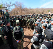 ◀ Omar García Harfuch y Ricardo Trevilla, titulares de las secretarías de Seguridad y Defensa, recorrieron zonas donde se realizan operativos. Fueron desmantelados tres laboratorios de droga sintética. Foto tomada de la cuenta