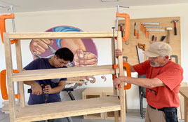 ◀ En la escuela transitoria Telpochtlallin, ubicada detrás de la barda del Reclusorio Oriente, en Lomas de San Lorenzo, se imparten talleres de artes, serigrafía, panadería, carpintería, programación y robótica, entre otros, para que jóvenes en condiciones de vulnerabilidad continúen sus estudios o aprendan un oficio. Foto Roberto García Ortiz