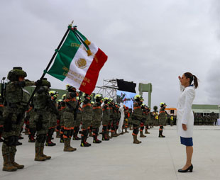 ▲ La jefa del Ejecutivo encabezó el acto conmemorativo en Cerralvo, Nuevo León. Llamó defensoras de la paz y la seguridad de nuestro ciudadanos a las fuerzas armadas; su lealtad, entrega y disciplina son baluarte de la nación, apuntó. Foto Presidencia