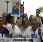 ◀ Familiares de personas ausentes y colectivos de búsqueda realizaron ayer una marcha en repudio a los hallazgos en el rancho Izaguirre. Caminaron por calles de ese pueblo turístico y gritaron consignas contra las autoridades locales y federales. En la parroquia del Señor de la Ascensión se llevó a cabo una misa. Foto Jorge Ángel Pablo