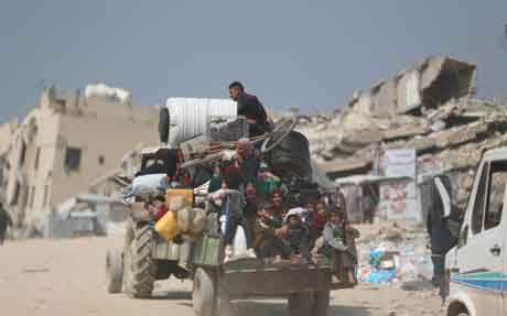 ▲ Gazatíes huyen de la ciudad de Beit Hanoun, en el norte de la franja, luego del reinicio de los bombardeos por parte del ejército de Tel Aviv, que ayer dejaron 400 muertos más. El primer ministro Benjamin Netanyahu indicó que intensificarán los ataques, mientras Hamas, que aún retiene a 59 de los cerca de 250 rehenes secuestrados en octubre de 2023, lo acusó de incumplir el cese de las hostilidades y poner en peligro los esfuerzos de los mediadores para lograr una paz permanente. Foto Xinhua / Agencias
