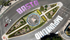 ► Pinta contra el ex futbolista y ahora diputado en la Glorieta de las Mujeres que Luchan. Foto Afp