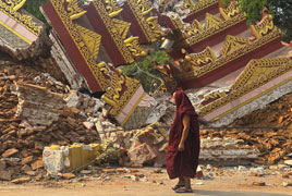 ◀ El terremoto del viernes afectó mezquitas y pagodas con siglos de antigüedad, así como monumentos centenarios. Mientras la ayuda internacional llega de forma gradual, la miseria y el caos provocados por la guerra civil se han profundizado. Opositores al gobierno militar acusaron que éste continúa sus ataques aéreos. Foto Ap. Agencias