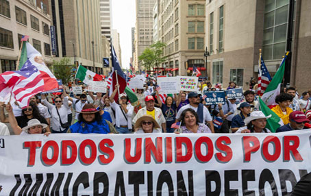 ▲ En febrero pasado hubo manifestaciones en los 50 estados del país vecino y se duplicaron en comparación con el mismo mes del primer periodo de Donald Trump, motivadas por los despidos masivos de trabajadores gubernamentales, el embate a los migrantes, los arrestos y deportaciones de estudiantes que se oponen a la guerra en Gaza y el intento de establecer una oligarquía en Washington. En la imagen, marcha en Dallas en demanda de lograr una reforma migratoria. Foto Afp