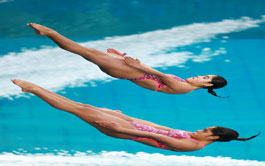 ▲ México comenzó ayer la cosecha de metales en la Copa del Mundo de Clavados de Guadalajara con los segundos lugares de las gemelas Lía y Mía Cueva (en la imagen) y de Juan Celaya, en trampolín; así como de Randal Willars y Kevin Berlín en plataforma de 10 metros. Foto World Aquatics