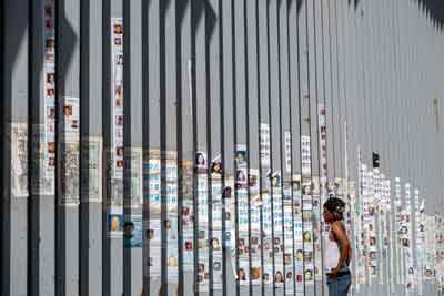 sería una burla. En la imagen, un hombre mira las fotos de personas ausentes en el muro que divide a México de Estados Unidos en Playas de Tijuana, Baja California. Foto Afp / Néstor Jiménez