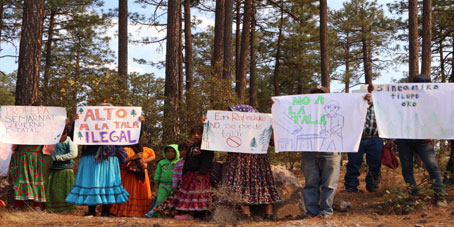 ▲ Indígenas de la comunidad Bosques de San Elías Repechique protestaron en las inmediaciones del aeropuerto regional de Creel, ubicado en el municipio Bocoyna, Chihuahua, para exigir a la Profepa y al gobierno del estado que detengan la tala ilegal en su territorio, pues cuentan con un amparo que los protege de la actividad de dos personas que afirman ser propietarias de predios y que ostentan permisos de aprovechamiento forestal. Foto cortesía de Contec. Rubén Villalpando y Jesús Estrada, Corresponsales