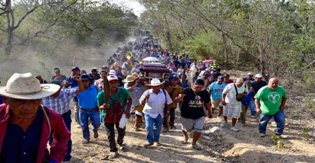 ▲ Con la exigencia de justicia, familiares, amigos, pobladores y activistas acudieron al sepelio del vocero del Cecop, Marco Antonio Suástegui Muñoz, quien murió el viernes luego de ser baleado el 18 de abril. Su hermano Vicente se encuentra desaparecido desde 2021. ¡Fuera la presa La Parota!, ¡la tierra no se vende, se defiende con la vida!, fueron algunas de las consignas en el panteón de Cacahuatepec, en la zona rural de Acapulco. Foto Cuartoscuro. Héctor Briseño, Corresponsal