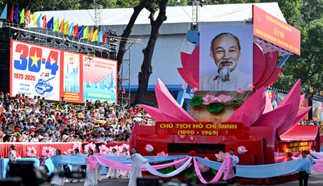 ▲ Una inmensa fiesta se vive en Hanoi al cumplirse medio siglo de la reunificación del sur con la derrota al entonces considerado invencible ejército de Estados Unidos, en Saigón, el 30 de abril de 1975, y el surgimiento de un nuevo tigre asiático, donde se apuesta por la paz con la sabiduría de haber triunfado, en la era moderna, sobre las invasiones estadunidenses, camboyanas y chinas de 1975 a 1979. Se organizaron programas artísticos y culturales, así como actividades cívico-militares para la ocasión. En la imagen, ensayo de un desfi le en la ciudad de Ho Chi Minh. Foto Afp. Kyra Núñez, Especial para La Jornada