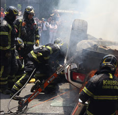 ▲ La recreación ayer de un sismo de magnitud 8.1 contó con la participación de 30 millones de personas en las 32 entidades del país, reportaron autoridades; además, se lanzó la nueva Alerta Presidencial a través de celulares. En la imagen, bomberos simulan un rescate en la Ciudad Judicial de CDMX. Foto Alfredo Domínguez / Daniel González