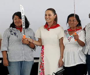 ▲ La Presidenta inauguró un hospital y la Universidad del Bienestar Parque Ecológico Lago de Texcoco en los terrenos que pobladores de San Salvador Atenco defendieron contra la construcción de un aeropuerto. Estuvo acompañada por activistas de la localidad. Foto Yazmín Ortega Cortés / Alma E. Muñoz, enviada