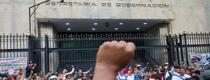 ▲ Luego de seis horas de diálogo en la Secretaría de Gobernación, la CNTE concertó un encuentro con la Presidenta para el viernes, lo que causó inconformidad entre profesores que esperaban afuera, pues exigían que se realizara antes. Por la mañana se movilizaron en la ciudad y se mantiene el plantón en el Zócalo. Foto Roberto García Ortiz / L. Poy, A. Villaseñor y N. Jiménez
