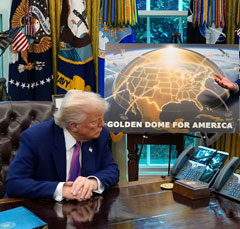 ▲ El presidente Donald Trump eligió el diseño Golden Dome, de 175 mil millones de dólares, para el programa de defensa contra misiles balísticos intercontinentales, espaciales e hipersónicos ante la amenaza de China y Rusia. Recordó que hace 40 años Ronald Reagan intentó un proyecto similar, pero ahora existe tecnología de vanguardia. Foto Ap / Agencias